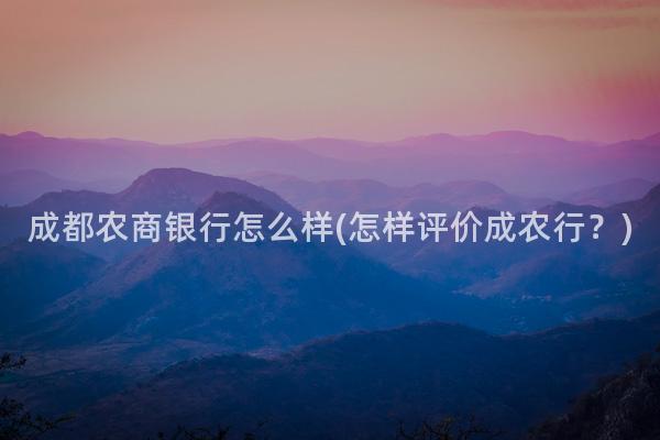 如何评价成农行?